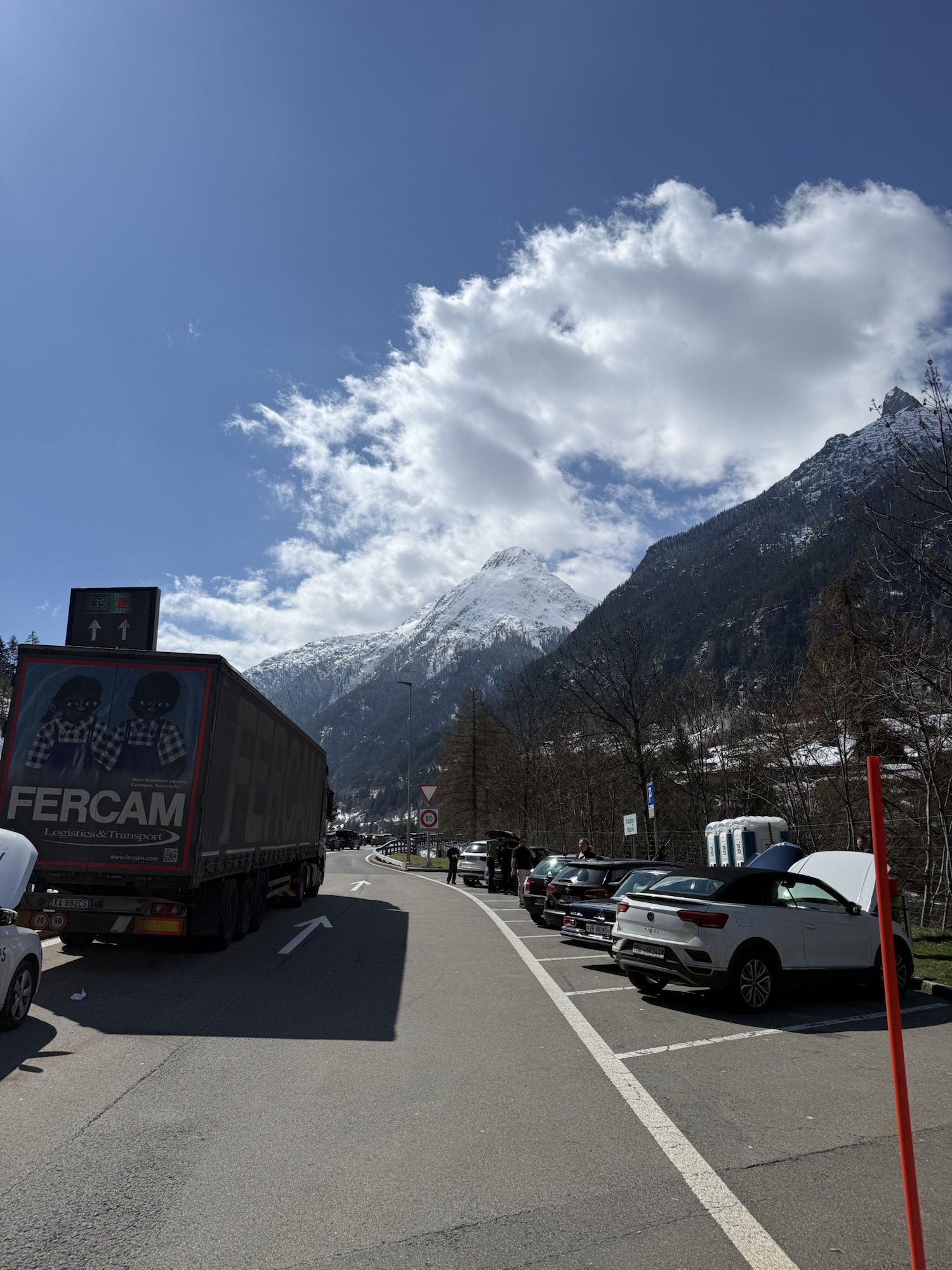 Bis in die Schweiz kommen wir gut durch, vor dem Gotthard staut es sich dann, die Spritpreise sind offenbar noch nicht hoch genug.